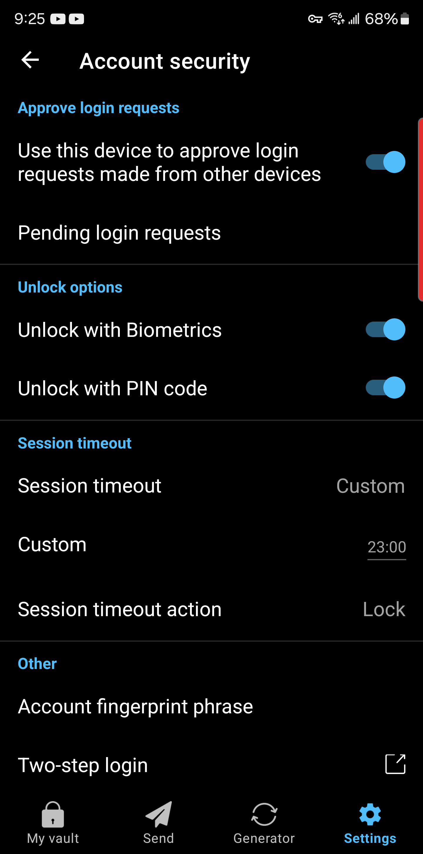 In your Bitwarden Desktop app, can you screenshot the “Security” section of the File >Settings screen (should look similar to the screenshot below)?
