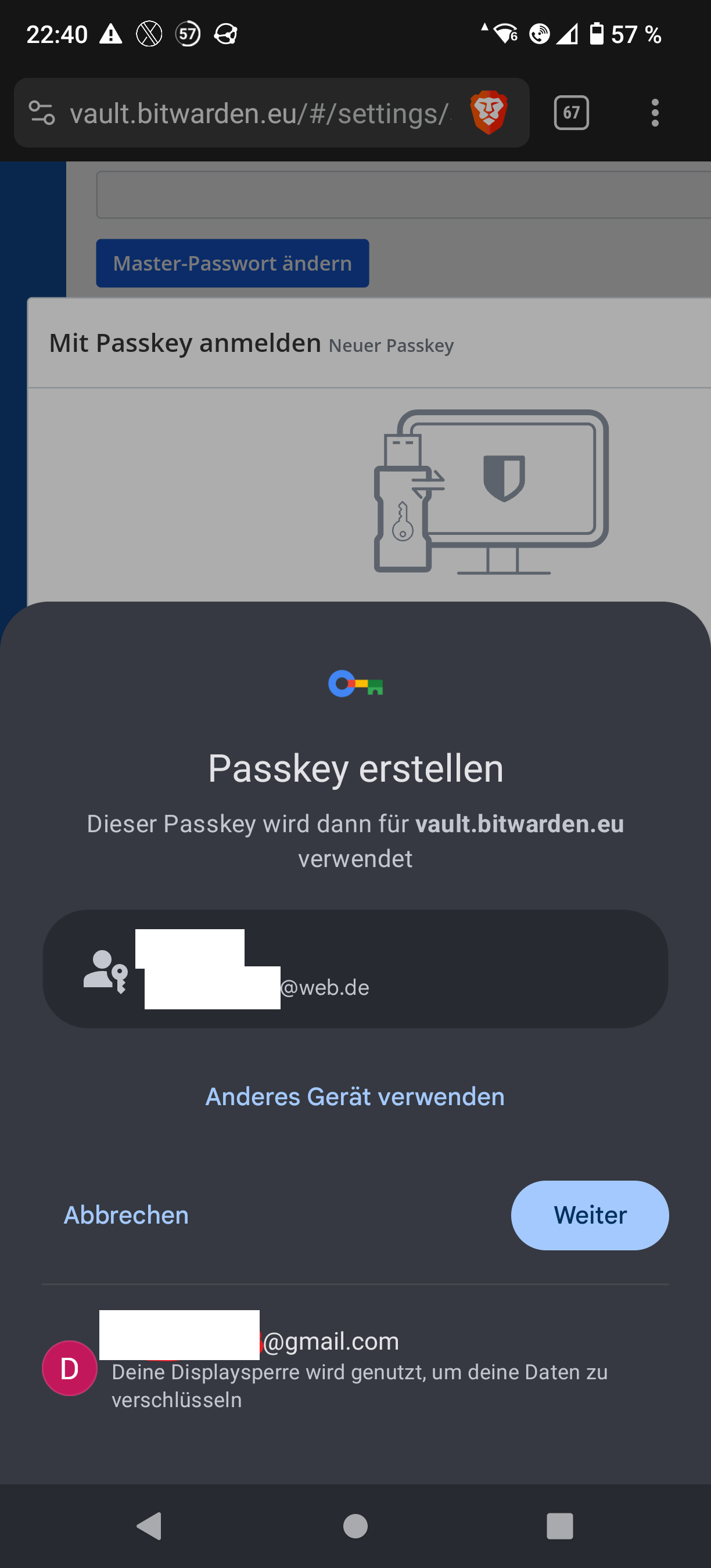 PS: “Anderes Gerät verwenden” (German) = “Use other device”.