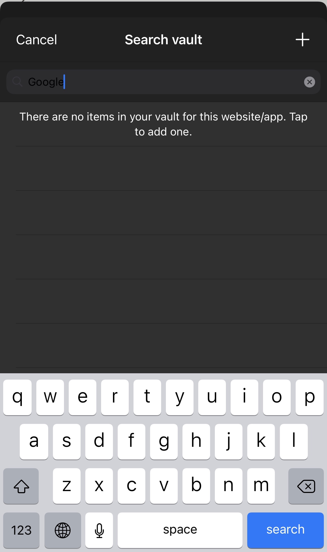 I believe I found a bug with the iOS app in dark mode. In iOS applications where BW does not find an associated item pertaining to that application, it provides the option to manually search vault, however when doing so 1. The font is in black and 2. It does not pull any results to any searches. Hopefully the devs can patch this in the upcoming updates. Thank you!