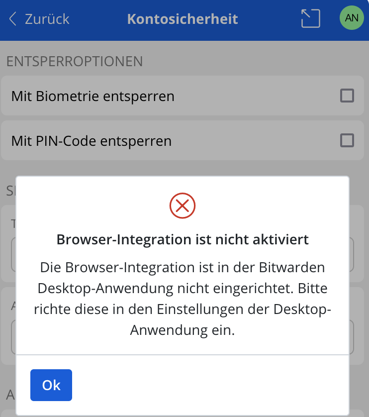 I have a problem with the biometric unlock in the firefox extension.