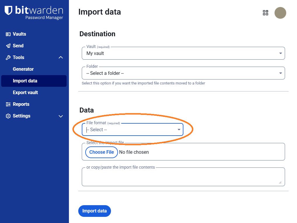 Now, you have to select (click on) the option “Dashlane (csv)” from the file format menu: