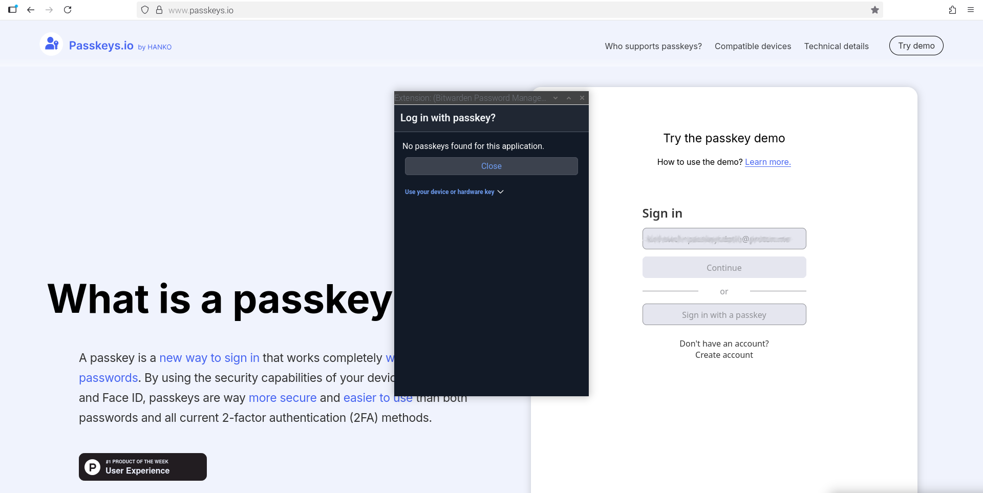I previously today created a passkeys.io account with only a verified email (as I didn’t know how to use a passkey), before installing the Bitwarden browser extension.