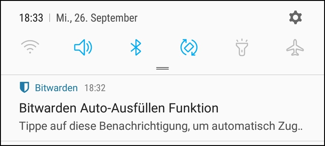 When I open a website in Chrome on my Android phone then Bitwarden shows a message in the notification center of Android offering me Auto-Complete for the selected website.